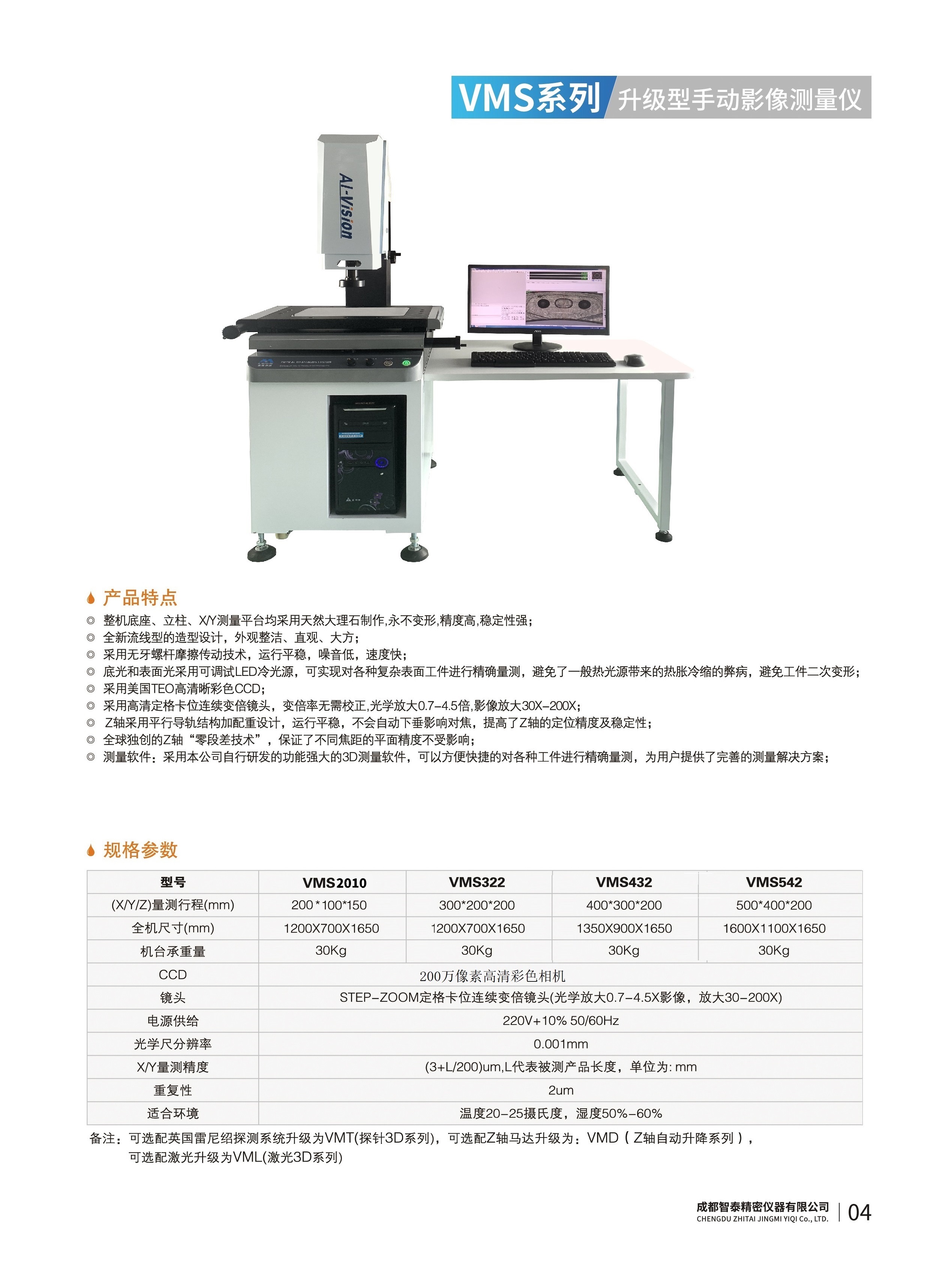 成都智泰精密儀器有限公司專注于精密測量儀器,人工智能,智能制造領(lǐng)域,專業(yè)從事智能視覺自動化檢測解決方案的貿(mào)易型企業(yè)。公司成立于2011年,位于天府之國成都,現(xiàn)有行業(yè)精英十余人,辦公倉儲面積200余平米。 公司主要產(chǎn)品為精密光學影像測量儀,精密輪廓形狀測量儀,精密機器人定位系統(tǒng),精密智能視覺尺寸檢測儀器,精密表面缺陷智能檢測設(shè)備,工業(yè)工程特種機器人。 公司憑借過硬的技術(shù)實力和產(chǎn)品方案,率先進入智能視覺自動化檢測領(lǐng)域,推廣以精密智能視覺自動化檢測為基礎(chǔ)的機器人自動化應(yīng)用,公司不斷整合上下游的資源,擁有巨大的全產(chǎn)業(yè)鏈優(yōu)勢。客戶群體覆蓋了我國精密制造業(yè)的多數(shù)領(lǐng)域,包括航空、航天、軍工、汽車、新能源、光伏、食品,精密電子、精密機械、模具、PCB、LCD、五金、塑膠、醫(yī)療、教育、計量及科研院所等行業(yè)。 公司創(chuàng)新的產(chǎn)品能滿足生產(chǎn)與制造行業(yè)客戶的要求,訓練有素的工程師能及時提供多種技術(shù)服務(wù),如解...